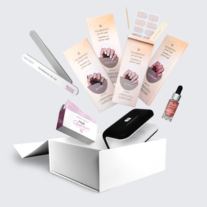 Our GLAM & GO gel nail wraps ensure that no matter how complex your chosen nail design, the application process remains incredibly simple. Our GLAM & GO gel nail wraps require no glue, base coat, or top coat—just peel them off the packaging, apply them to your nail, trim to size, cure twice, and voilà!
